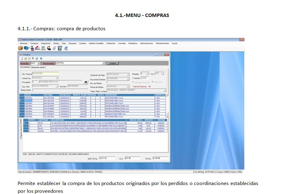 - Sistema Comercial; compras, ventas, almacen, cotización, locales de ventas, cuentas por cobrar y pagar.