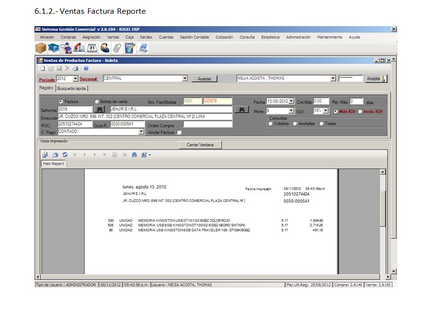 - Reportes: Cristal Report 10.0