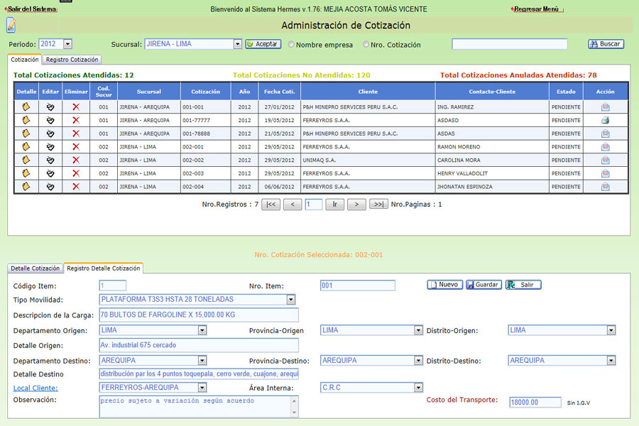 A travéz del buzón de sugerencias, cualquier cliente puede realizar la cotización de los servicios que brinda al empresa, asimismo por medio de una consolida de administración de atención al usuario pueden registrar dicha cotización o proforma, estableciendo el nivel de prioridad e indicando el estado la cotiación. |